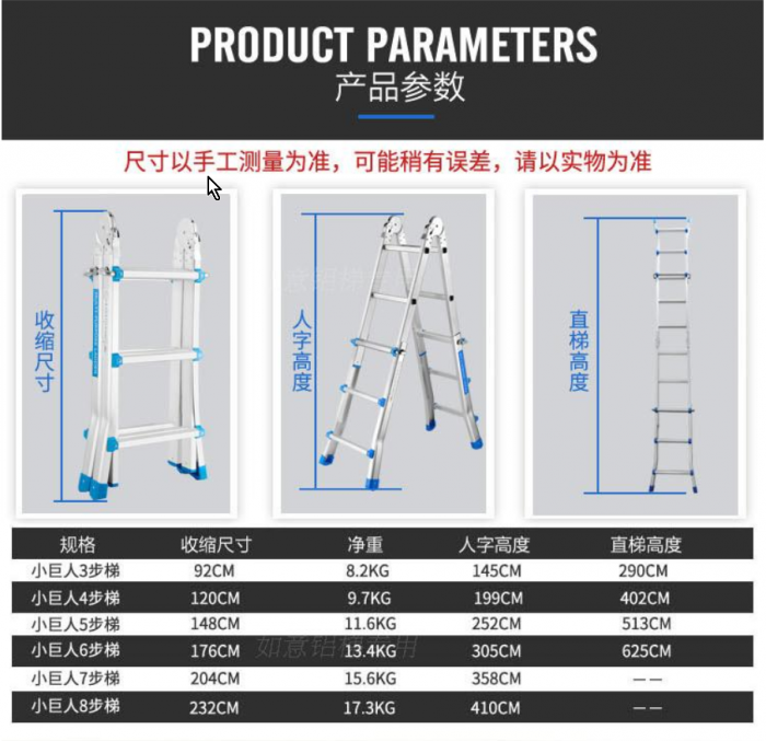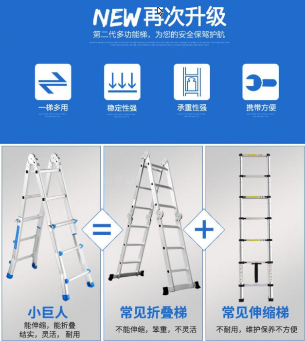 多功能折叠梯工程梯人字梯家用梯子伸缩梯小巨人梯升降加厚铝合金